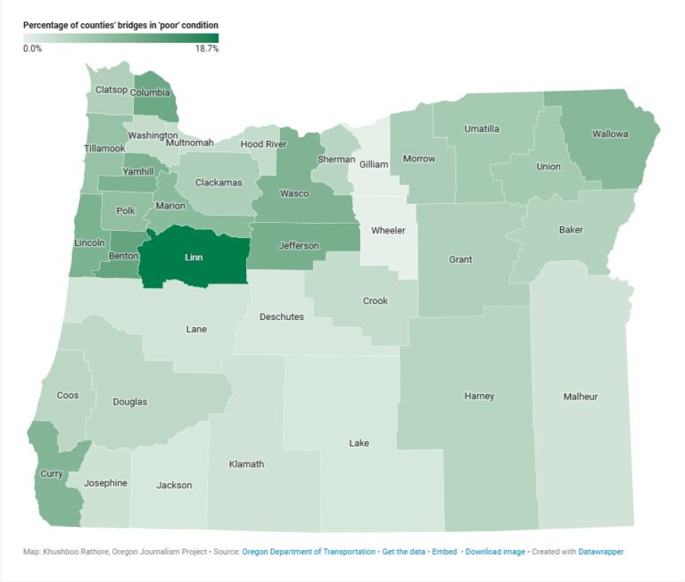 By Khushboo Rathore Oregon Journalism Project As lawmakers search for a funding solution for the Oregon Department of Transportation, an OJP analysis of Oregon bridge data shows that only 6%…