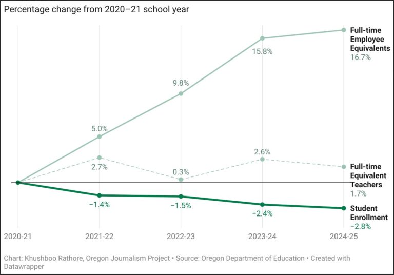By Khushboo Rathore Oregon Journalism Project – The New Era staff contributed to this story As Oregon public school leaders face reductions in state funding, they turn to their biggest expense…