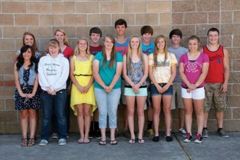 These athletes are among those named to All-League or All-State teams during the spring athletic season. In front, from left, are Natalie Thorpe, Softball, Second Team All-League Outfield; Caitlyn Gillespie, Softball, Second Team All-League Infield; Katie Virtue, Softball, First Team All-League Outfield; Emily Marchbanks, Softball, Second Team All-League Pitcher; Sabrina Davis, Track, Honorable Mention All-League; Courtney Kent, Track, Honorable Mention All-League; and Josie Knight, Track, Honorable Mention All-League. In rear, from left, are Megan Graville, Softball, First Team All-League Infield; India Porter, Track, First Team All-League; Kevin Seiber, Baseball, Second Team All-League, First Base; Jakob Hiett, Track, First Team All-League, Honorable Mention All-State; JT Weld, Baseball, First Team All-League Outfielder; Michael Tolle, Golf, Second Team All-League; and Spencer Knight, Track, Honorable Mention All-League. All-League and All-State honorees who were not available for this photo include: Sierra Thayer, Softball, Second Team All-League Outfield; Ben Terry, Track, First Team All-League, Honorable Mention All-State; Ashton Stutzman, Track, Honorable Mention All-League; Haley Kent, Track, Honorable Mention All-League; Nicole Rasmussen, Track, Second Team All-League; Kaitlyn Watts, Track, Second Team All-League; Stephen Bishop, Golf, Second Team All-League; Brandon Marquez, Baseball, First Team All-League Infielder; Drayson Scott, Baseball, First Team All-League, Utility; Kory Van Deusen, Baseball First Team-League, Pitcher; First Base; and Austin Rice, Baseball, Honorable Mention All-League, Outfielde