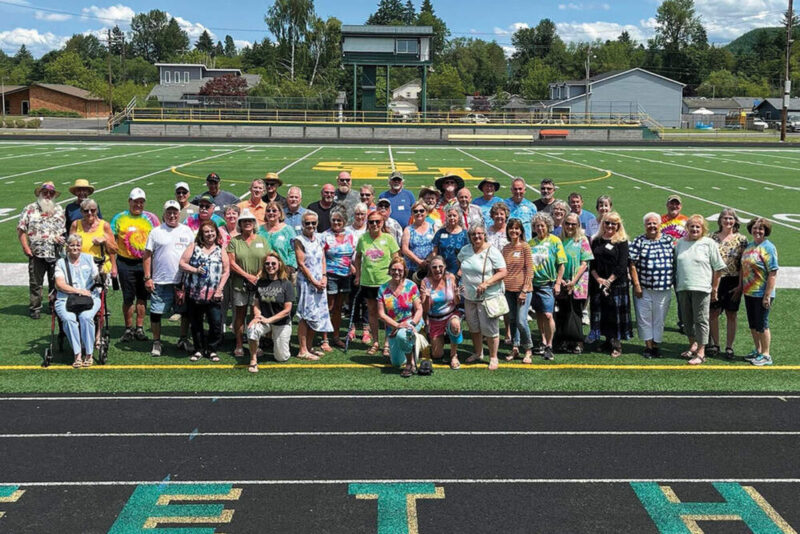 Members of the Sweet Home High School Class of 1972 gathered July 9 for their 50-year reunion. Some participated in the Cut The Gut cruise night and gathered at the Woods Roadhouse in Foster (owned by two Class of ’72 alums) for a concert by the Riley Boys Band (two of whom are also Class of ’72 alumni). On Saturday alums gathered in front of the high school to watch the parade. Following the parade, they were given a tour of the high school. Many had not seen it since the early-2000s remodel. Next, they met at Husky Field for lunch and a show by the high school cheerleaders and then toured the remodeled Junior High School. On Saturday evening, they met at the Elks Lodge for an awesome dinner, some reminiscing with slide shows and trivia and a lot of visiting with old friends and classmates.