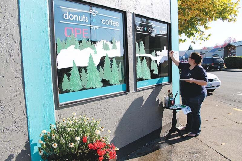 Pulliam, owner of Willamette Valley Art Studio in Lebanon, hosts paint night events throughout the Willamette Valley, and recently expanded to painting windows.