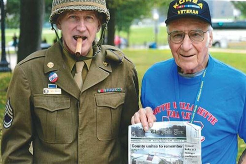 The New Era went with Walt Rasch on an Honor Flight to Washington, D.C.; with his son, Gerry Rasch. Here is Walt with period volunteer Sid Wade, left, at the World War II Memorial. “There were 50 of us and the experience was unbelievable,” Walt reported.