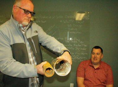 Scott Swanson Greg Springman holds a 4-inch water main that’s, well, in rough shape. Rust pocks the inside,…
