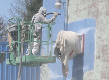 Sean C. Morgan After one day and a lot of sand, the 8-year-old mural on the Vets Club…