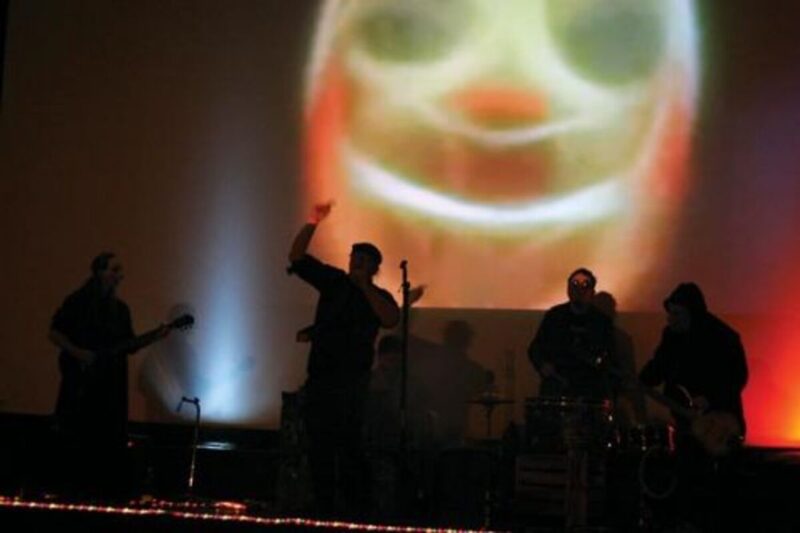 The group plans a visual assault from the silver screen behind them while dancers perform before them, with set pieces and instruments crafted from wood and bits of electronics in a sort of urban-rural collision. The theme is shocking in a Halloween way befitting Halloween weekend.