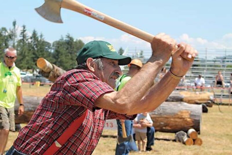 After retiring from the logging industry, Bob’s passion for logging continued as he became involved in and participated in logging shows both locally and abroad to other countries such as Australia, Canada and Spain on the U.S. team. He competed in ax throwing, horizontal/standing block chop, crosscut, choker setting, hot saw, and tree climbing where he won hundreds of ribbons, first place trophies and loved competing in the Albany Timber Carnival. The highlight of his performing was working at the World’s fair in 1967 in Montreal, Canada. On the logging circuit Bob liked to be known as the “Rhinestone Logger.”