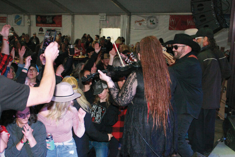 Country music fans get their groove on with a crowd appearance by headliner Kurt Van Meter, second from right, on Saturday night, April 16, at Music and Brews in a large tent erected at 1306 Long Street, behind the Rio Theatre. The festival ran Friday and Saturday.