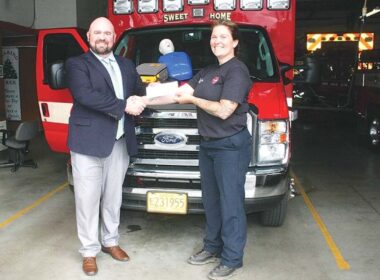 Travis Luttmer, an agent with Country Financial Insurance in Corvallis an Sweet Home resident, donates a check, at…