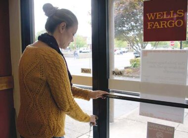Nichole Forbes, manager of Wells Fargo branch in Sweet Home locks the door for the final time after…