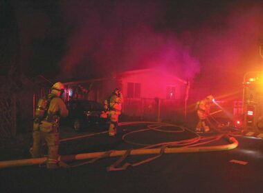 Firefighters extinguish a fire at 1610 Cedar St., home to three adults The fire destroyed the garage and…