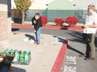 Dylan DeBrie, 8, tries the ring toss during Safeway’s kickoff to its annual Turkey Bucks program on Oct.…