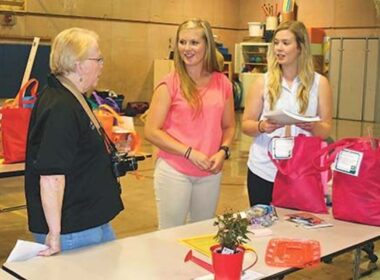 New teachers Hannah Galka and Emma Brock were each treated to several bags of school supplies and a…
