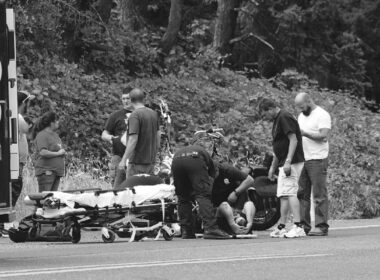 Medical personnel attend to injured motorcyclist Ronald Castleman of Sweet Home near milepost 17 on Highway 228 Monday…