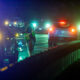 Firefighters clean up around the scene of a crash at the intersection of Pleasant Valley Road and North…