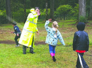 Principal Josh Dargis above, gives Lexi Simonson a high five during Oak Heights Elementary School’s Jog-A-Thon on Oct.…