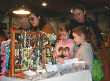 Seven-year-olds Elly Manley, left, and Raelee Hindman check out rocks from Lebanon’s Rock Castle and Cota’s Lapidary with…