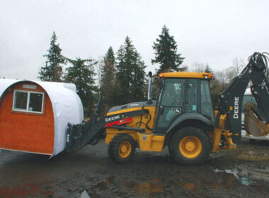 A Sweet Home Public Works employee moves a Quonset hut, built by Sweet Home High School students, to…