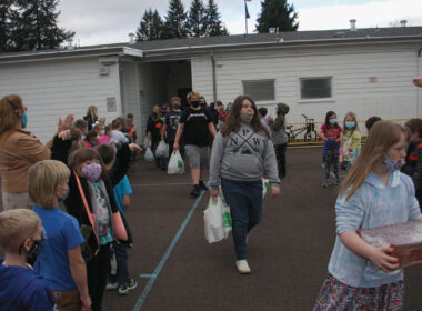 Hawthorne sixth-graders load up food they collected during the school’s annual “Civil War” celebration, pitting students and teachers…