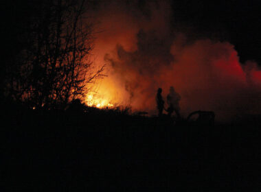 Sweet Home firefighters battle a fire that destroyed a barn at 43424 Ames Creek Road on the evening…