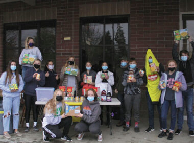 Sweet Home High School students show off some of their gleanings Thursday, Nov. 4, after pounding the pavement…