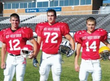 Sweet Home High School alumnus Nick Pitts, left, appears with teammates, John Pratt, left, of Central, and Cody…