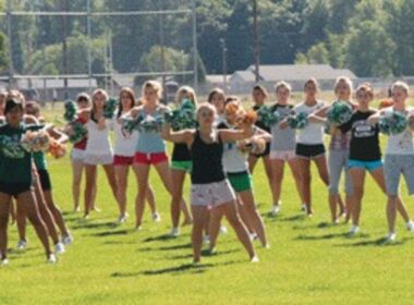 Sweet Home High School cheerleaders get in an early-morning preseason workout last week.