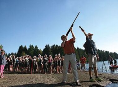 Linn County Parks and Recreation Director Brian Carroll,, served as guest starter for the men’s Sprint Triathlon Saturday…