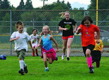 Young participants in Sweet Home High School’s annual summer soccer camp sprint across the field last week during…