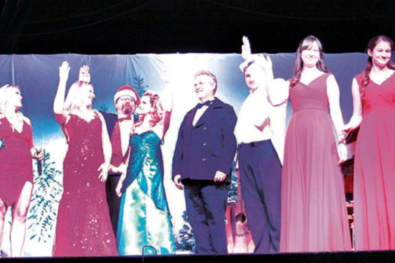 Performers acknowledge the crowd following the completion of the Christmas Gala concert Saturday evening in the Sweet Home High School Auditorium. The two-hour program featured a wide range of seasonal and Christmas music, along with a few of Jessie Leigh’s most popular and most recent hits. Approximately 200 people braved the weather to attend the event.