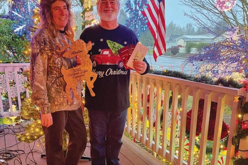 Joyce and Paul Rowton, featured in the first photo, were double winners in the Sweet Home Chamber of Commerce’s 2021 Lights Contest (their display, at 994 29th Ave., illuminates the second photo), winning both People’s Choice and Realtors Choice in the 2021 Lights Contest, announced by the chamber.