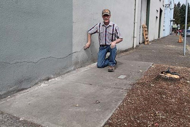“This is the second sidewalk they’ve put in,” said Garry Burks, owner of Santiam Feed. For his part, he was concerned about the tree’s roots pushing the sidewalk into his building, damaging it.