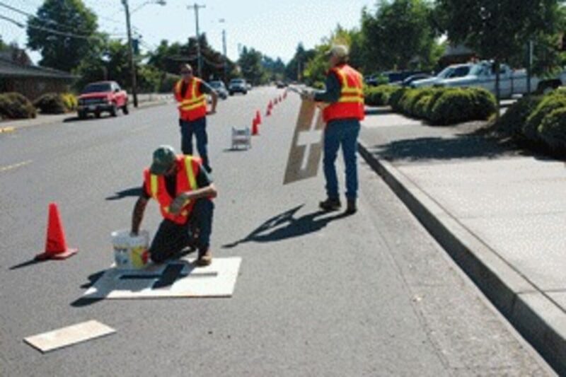 City of Sweet Home Public Works employees painted parking stalls along Long Street, between 10th and 18th avenues, last week in an effort to maximize available parking downtown.