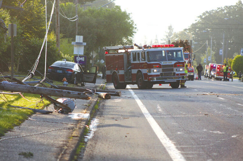 According to a SHFAD statement, damage to the power pole was severe and caused wires to hang low over the highway’s westbound lanes.