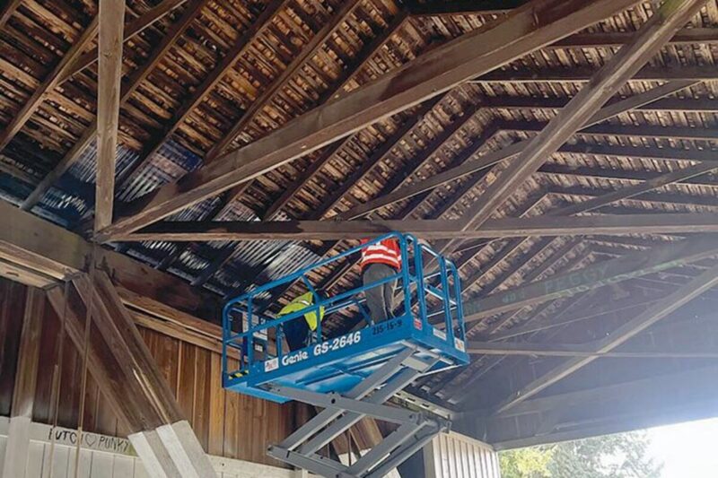 Kennedy said the bridge crew was checking the facility on behalf of the Parks Department. He said that some of the beams have been damaged by leakage, and that the goal is to get a tarp on the bridge “when we get some nicer weather” to protect it from the rain.