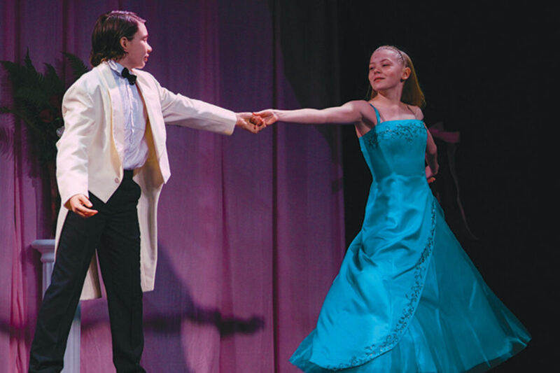 Logan Shaffer, left, and Shasta Tenbusch, sixth-graders from Hawthorne School, perform a waltz during SHOCASE’s Power of Love Gala Saturday evening, March 18, at the Sweet Home High School Auditorium. The two were dancing to “Perfect,” sung by Alex Wilson, among a lineup of local artists who performed during the event, which drew an audience of some 200 people.