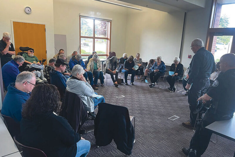 Participants in Sweet Home’s Day of Prayer are led, in the first photo, by Pastor Jim Corley of the Evangelical Church during a prayer session at Sweet Home Police Department Thursday, May 4.