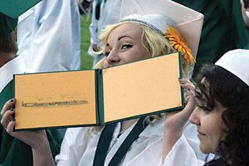 The 145 graduates heard from classmates and three departing teachers, who challenged them to make wise choices, be individuals who love what they do and who do it well, and show regard for others. After a wavering start on the school’s alma mater, they finished strong and marched out.