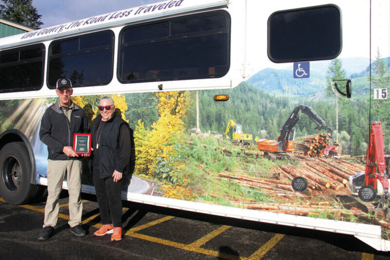 Ken Bronson, recently retired Linn County special/rural transportation coordinator, presented the award to McQueary’s widow Jo Ann McQueary last week at the transit station at the Sweet Home Senior Center.
