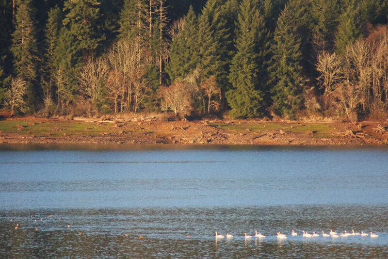 Snow geese glide on Foster Lake last week during a stop, presumably on their way to the Arctic, where they’ll breed this spring and summer.