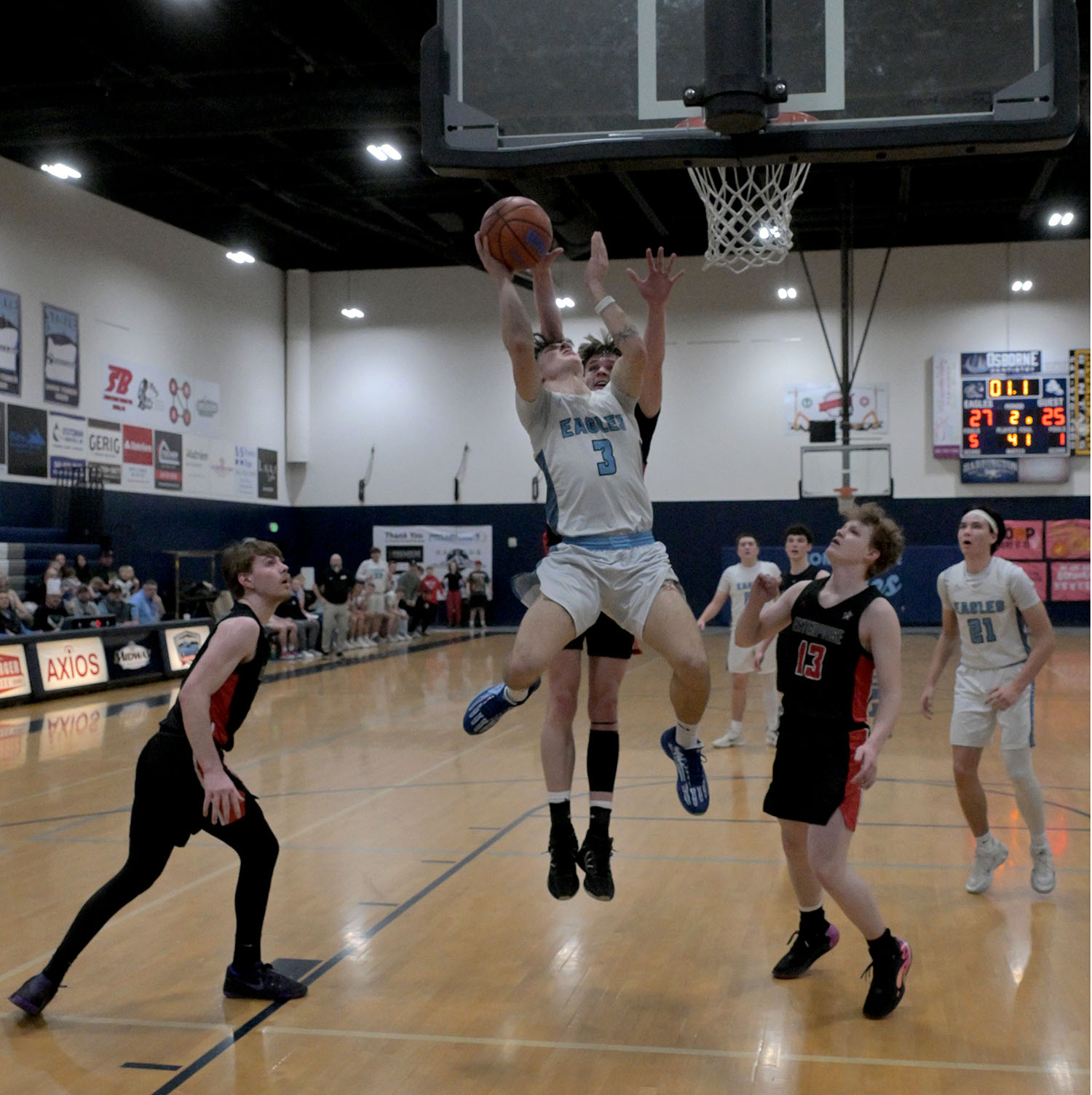 But that was when senior Brison Edwards scored six unanswered points to get things rolling for the Eagles, putting them up 56-47 and East Linn never looked back.
