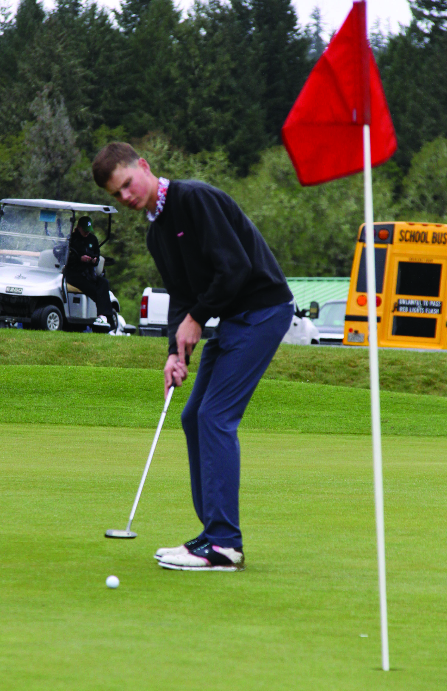 East Linn Christian’s Grady Knurowski finished on top of the competition as an individual Tuesday, April 21, as the Eagles hosted a dozen other schools in their only home golf competition of the year, at Mallard Creek.