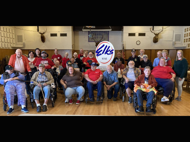 Sweet Home Elks Lodge #1972 welcomed veterans from the Edward C. Allworth Veterans Home inb Lebanon who came up for their monthly steak luncheon. The Sweet Home Elks presented the Veterans with a $1,000 Elks National Foundation Freedom Grant for items that the Activities Department requested for their new residents. They all look forward to coming up to the Sweet Home Elks Lodge to have a wonderful meal and be spoiled a bit on a day out and about!