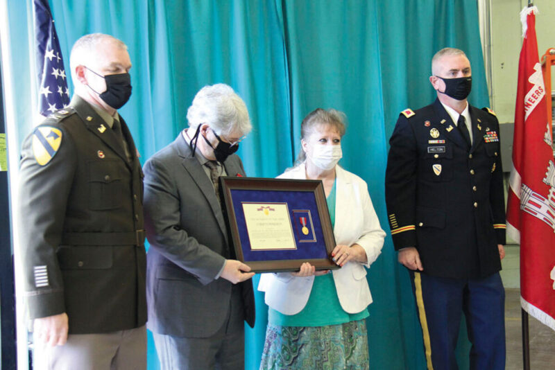 Two Army colonels presented the medal at the ceremony last week before an audience that included three of the Pomeroys’ four children, his parents and his brother.