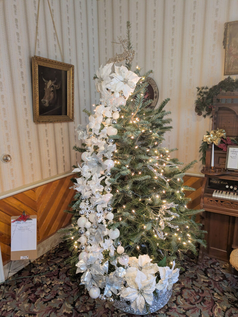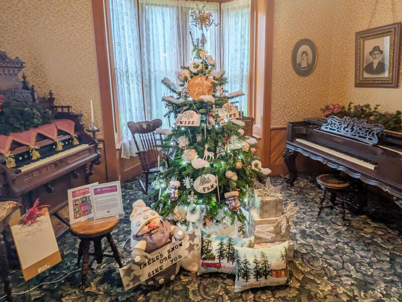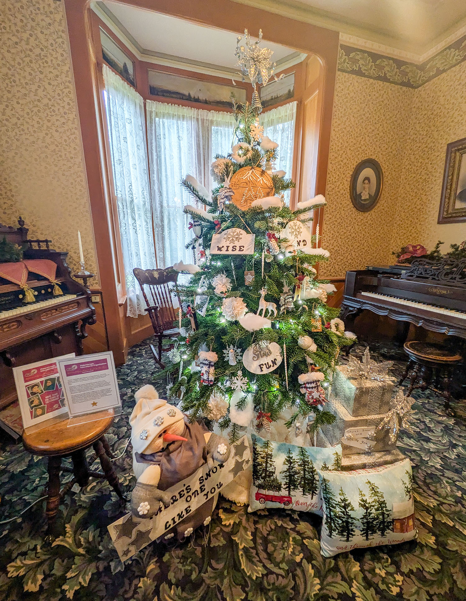 “There’s Snow One Like You,” decorated by the Sweet Home P.E.O. Club, sits on display inside the Moyer House. Photos by Sarah Brown