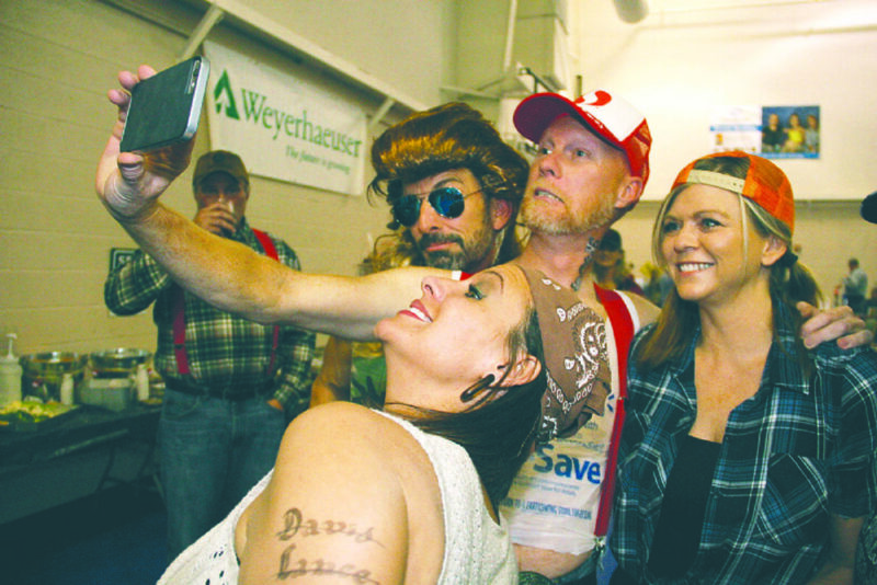 Recording a historic moment at the Sweet Home Boys & Girls Club annual auction Saturday, :Oct. 22, Robert Shamek, center, snaps a selfie of, behind him on the left, Dave Bauer; Sherri Gregory, right; and Cassie Cruze. They’re decled out in redneck garb, per the event’s theme: “Redneck II: This Ain’t No Yard Sale.” The event raised a net of approximately $135,000, said Kris Latimer, executive director, and “we met our fund-raising goal for the event.” For more information and photos, see page 10.
