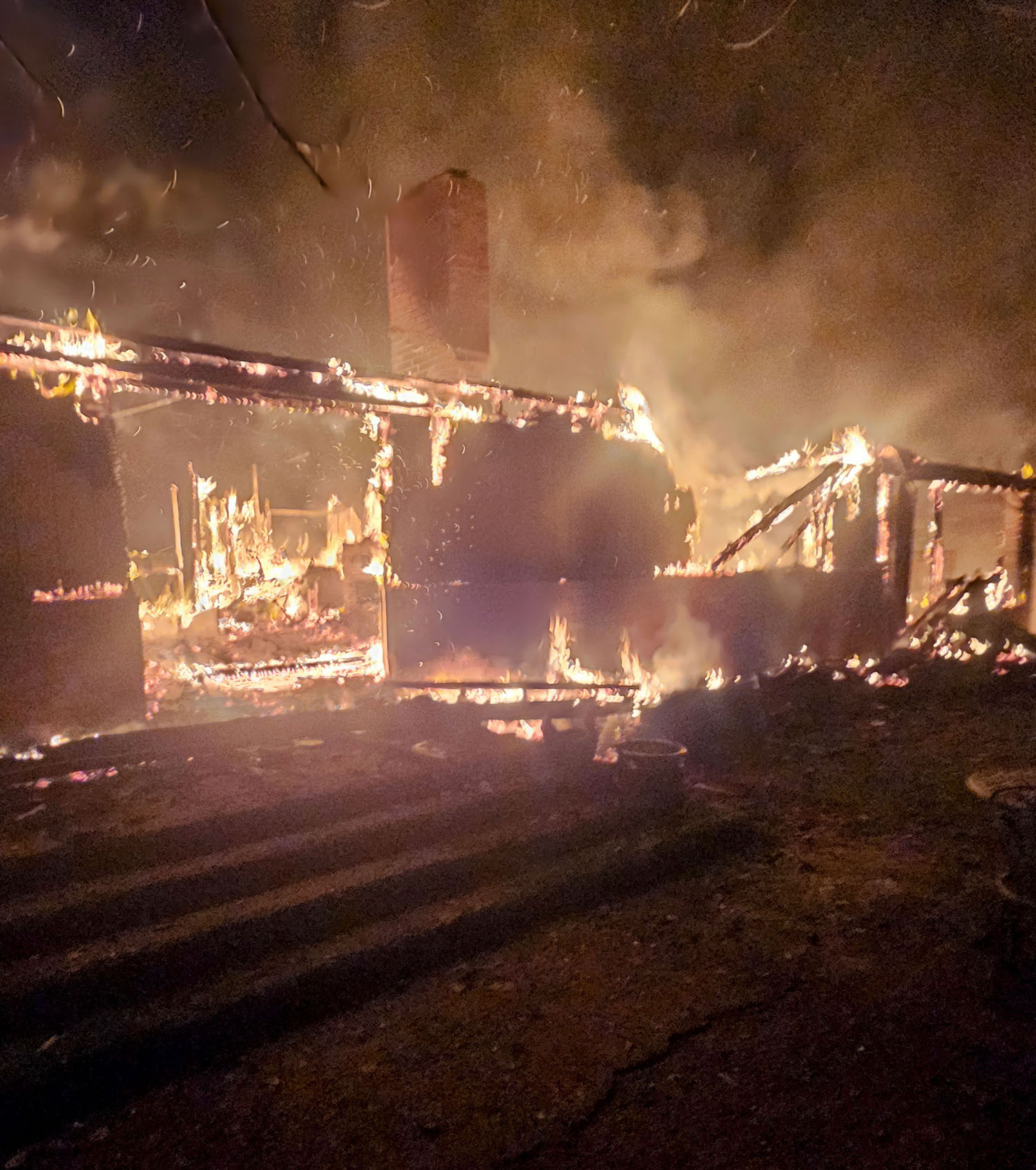 Fire crews and the Linn County Sheriff’s Office responded just before 4:30 a.m. to a two-alarm call at 47225 Old Hufford Drive after a family member who lives across the ridge reported that the residence was on fire, reporting it to 911 at 4:22 a.m.