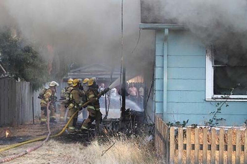 The Sweet Home Fire and Ambulance District responded with 22 firefighters and three pieces of apparatus, assigning one to the burning house and one each to the threatened neighboring homes.