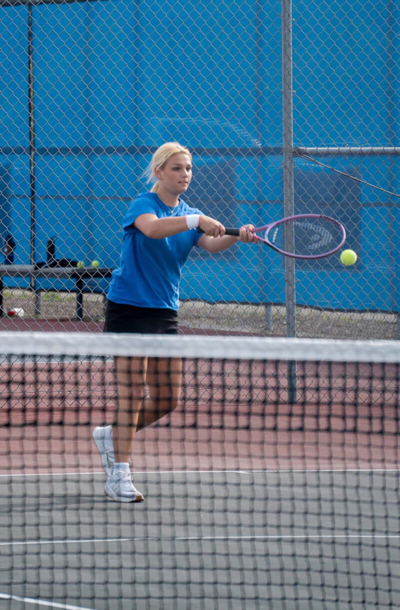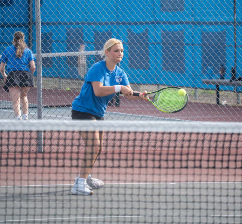 Frey won the No. 1 singles match 6-4, 6-1 over Sayre Irving and senior Hailey Destowet won the No. 2 match against the Dragons’ Addisyn Moore 6-2, 6-3.