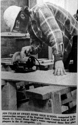 Lebanon and Sweet Home high school students earned first place in several categories after competing against 10 other schools at the Regional Skills contest at LBCC. They are: Ted George, LHS, architectural drafting; Doyle Bare, LHS, mechanical drafting; Charlie West, SHHS, gas welding; Jeff King, LHS, construction; Lee Ann Troyer, LHS, shorthand I; Jan Hutley, LHS, spelling.
