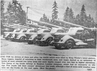 A snow storm left nearly 16 inches of the white stuff in the city, appearing in about four layers in as many days. The snowfall, believed to be a record for this time of year – at least, since the fire patrol has been keeping track – was not serious enough to close many schools, but high school absences did double. Snowballs accounted for two broken windows. In town, a wooden awning broke under the snow’s weight, power line fuses blew, and one youngster was in tears while moving his snowman to the porch in hopes of preserving his shrinking masterpiece